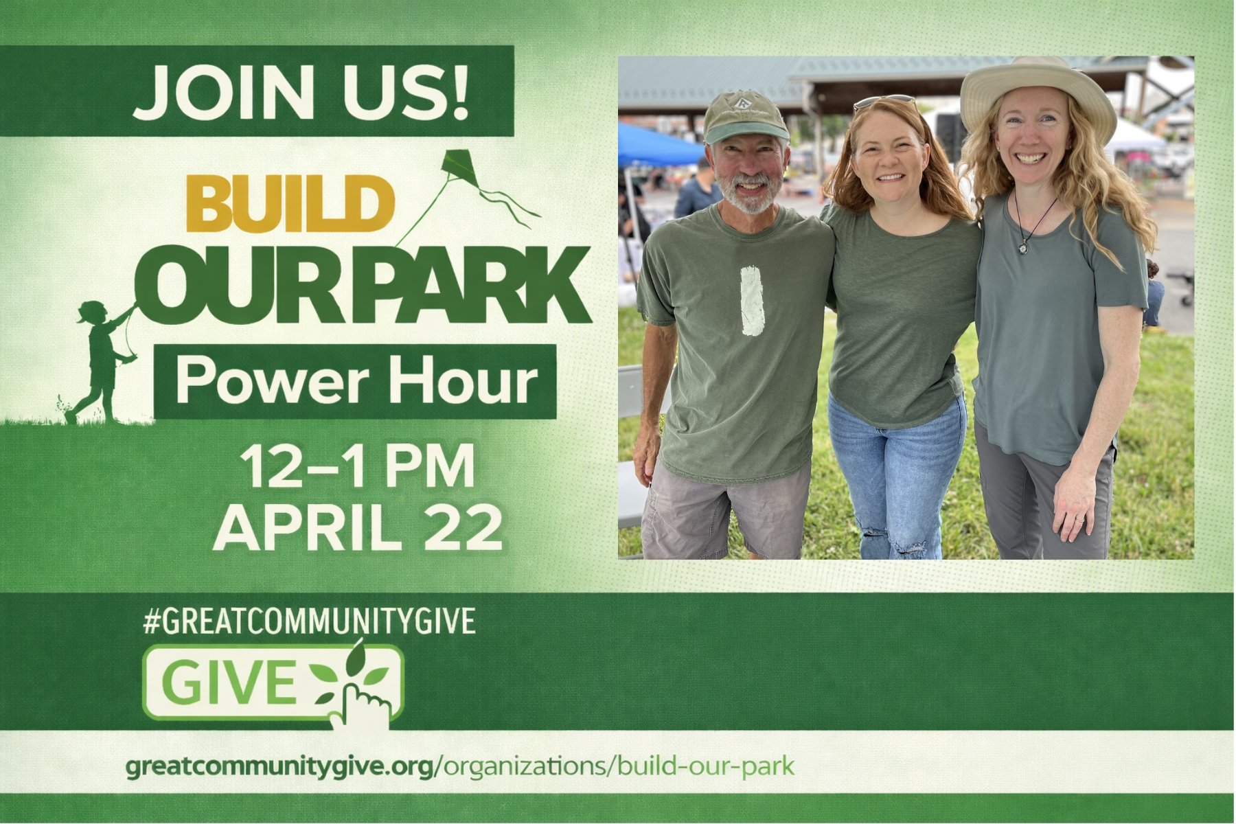 Join Build Our Park for the 2026 Great Community Give. This is a day to come together and invest in a vibrant downtown park for our community.
